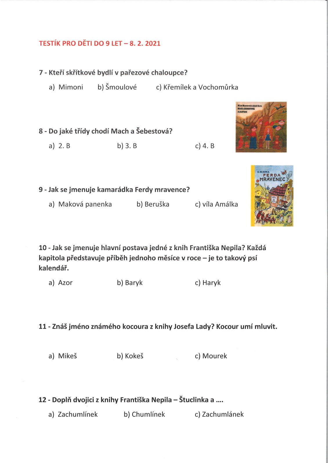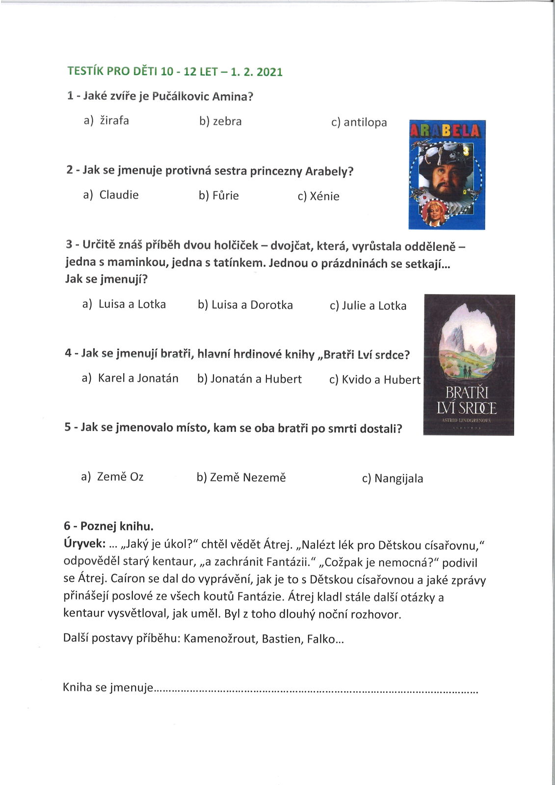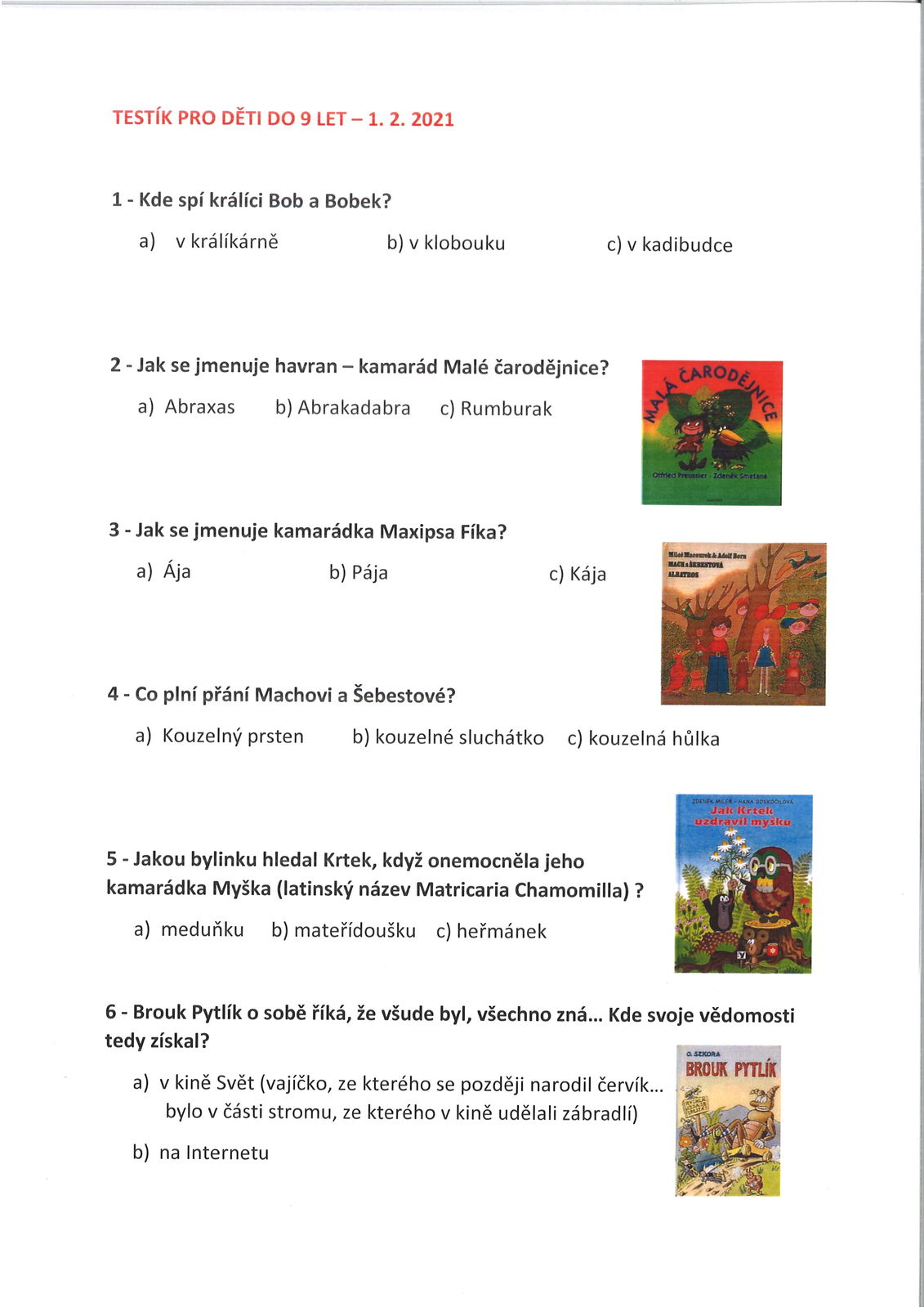 Vypracované testíky posílejte na detske@mksokolov.cz. Uveďte celé jméno a věk.