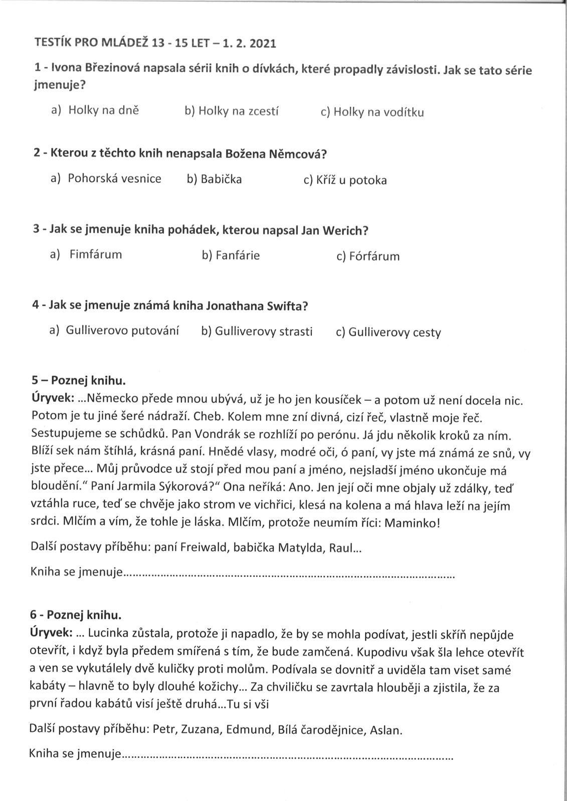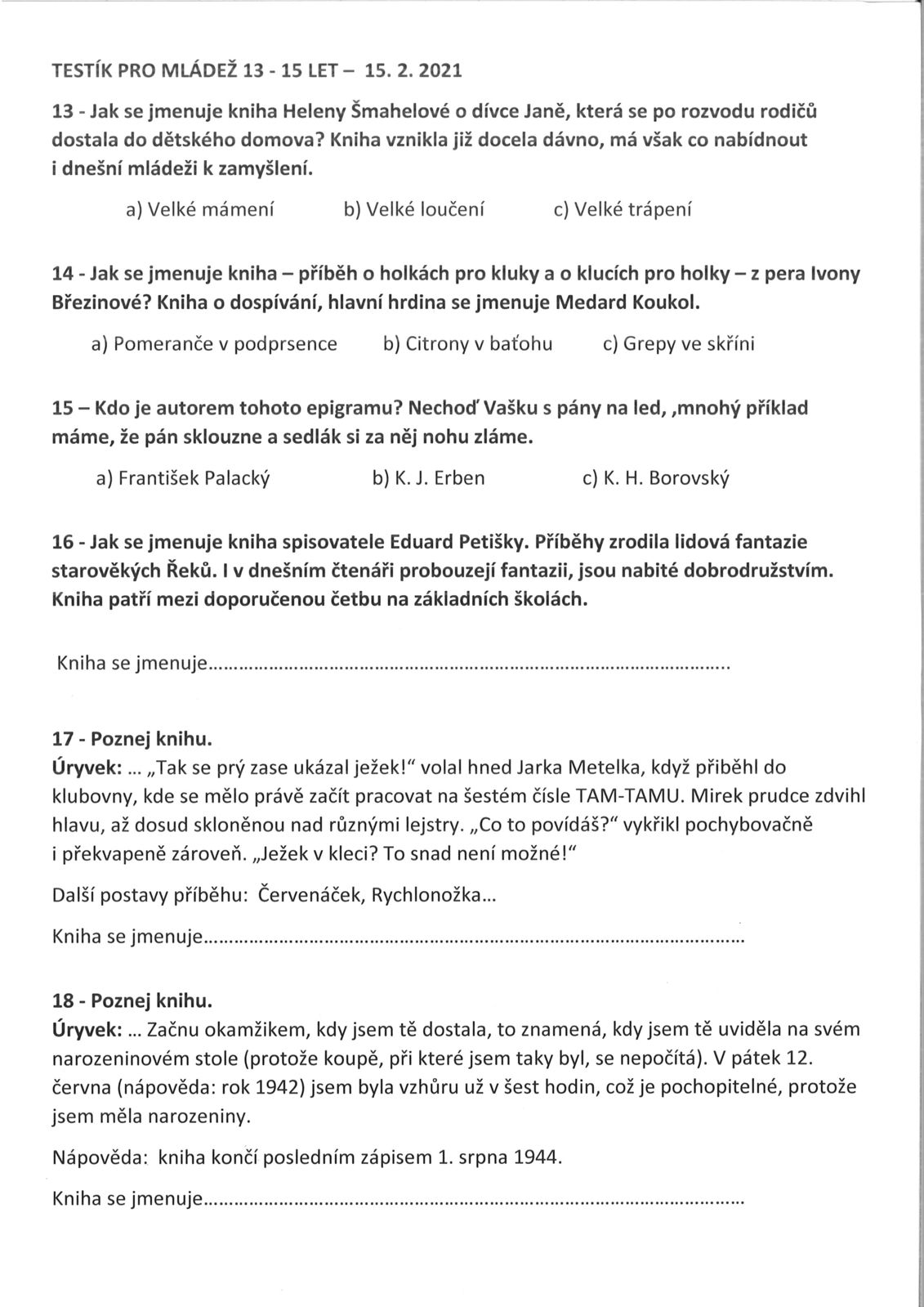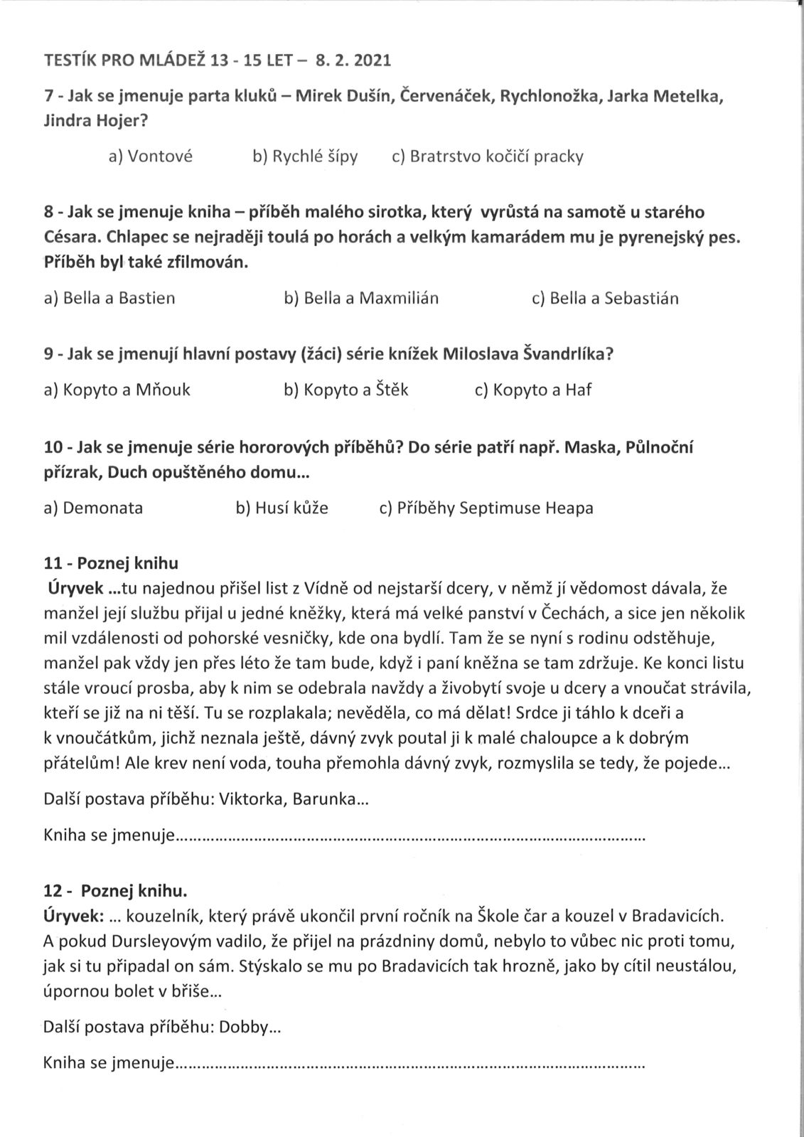 Vypracované testíky posílejte na detske@mksokolov.cz. Uveďte celé jméno a věk.